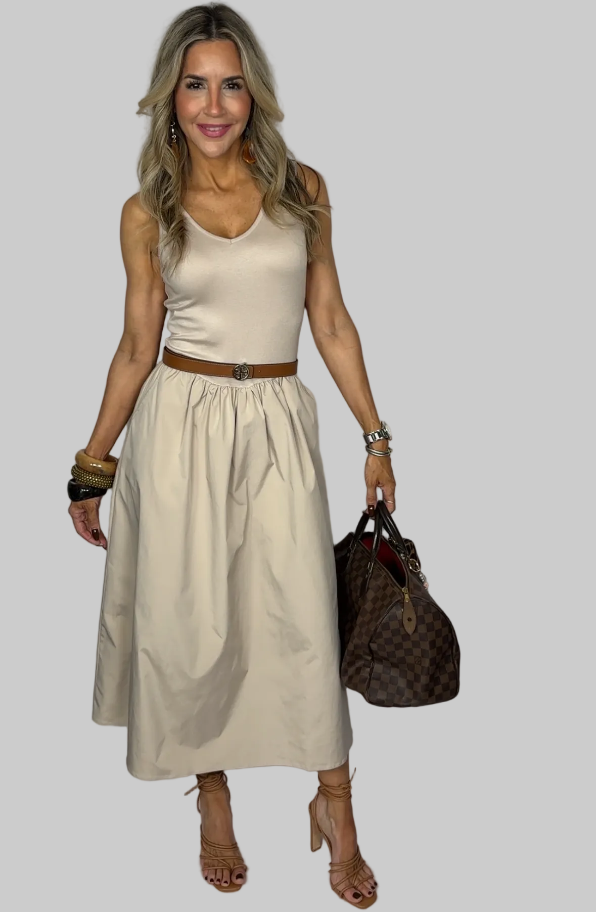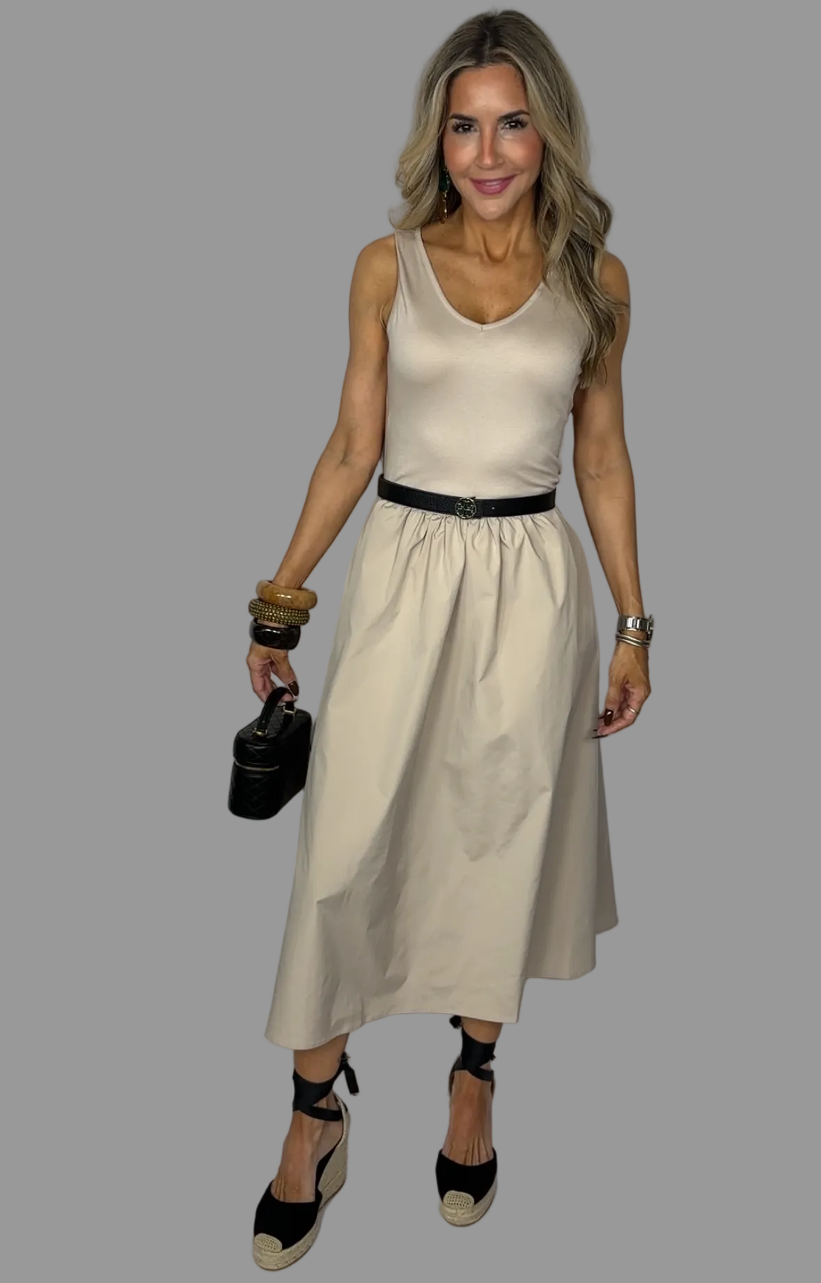 Beige Flared Midi Dress